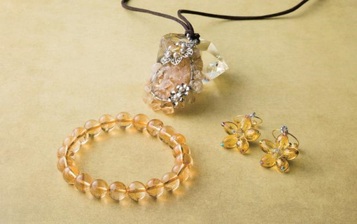 語源はこの石の色が柑橘類の「citron(シトロン)」の果実に似ていることからきています。クォーツに属し、色の濃淡にかかわらず黄色透明のものをシトリンと呼びます。天然のシトリンは産出量が少ないため、一般的に流通しているものは、大半がアメジストを人工的に加熱してできたものですが、鉱物的には天然シトリンと同種・同成分です。かつてある宝石商がまったく別の鉱物であるシトリンとトパーズの色彩が似ていることから「シトリントパーズ」という名前で売り出したため、シトリンとトパーズが混同されるようになり、今日でも名称が混同されることがあります。